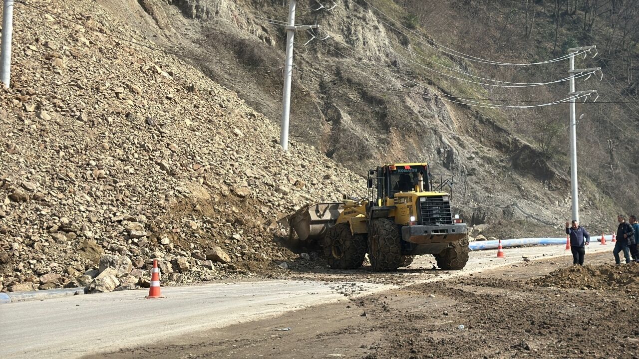 Yolu kapatan kaya ve toprak parçalarının ekiplerce kaldırılmasının ardından trafik kontrollü sağlanmaya başlandı.