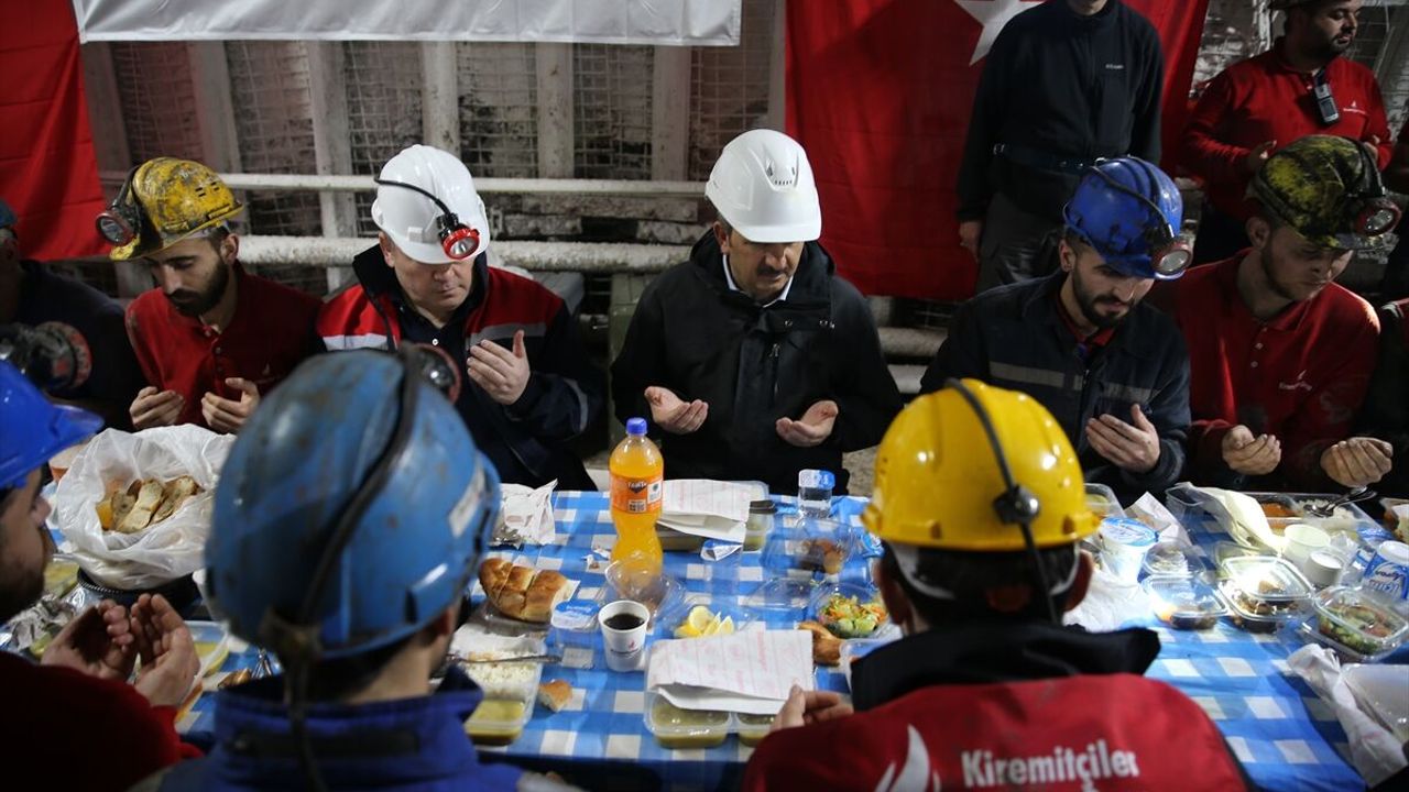 EDİRNE (AA) - Edirne Valisi Yunus Sezer, maden ocağında işçilerle iftar yaptı.