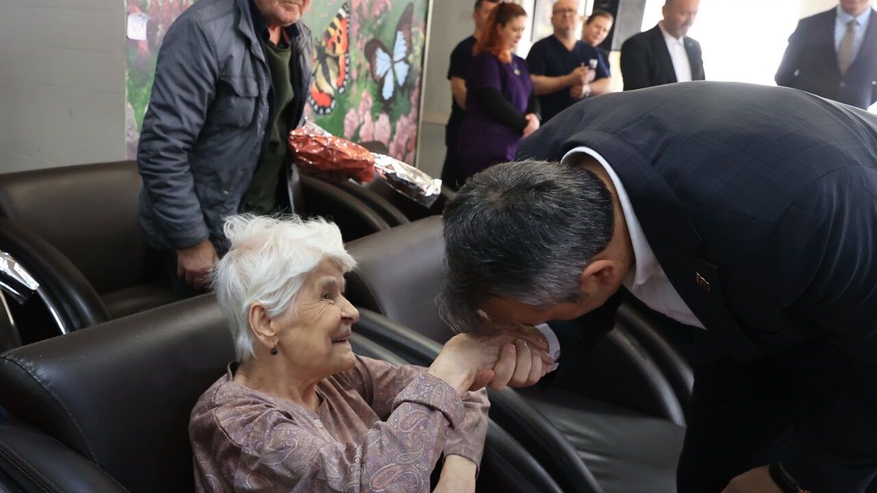 Huzurevi sakinlerinden 81 yaşındaki Saliha Işık, kendilerini sık ziyaret eden Sezer'e teşekkür etti.