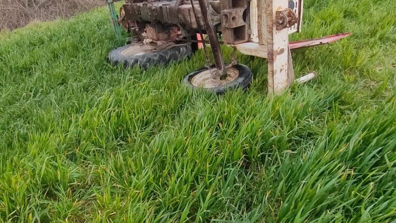 Esetçe beldesinde tarlaya giden Hasan Deniz'in kullandığı traktör devrildi.