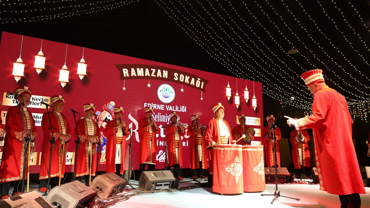 EDİRNE (AA) - İstanbul Tarihi Türk Müziği Topluluğu, Selimiye Meydanı'nda 'Ramazan Vakti Mehter Ahengi' konseri verdi.