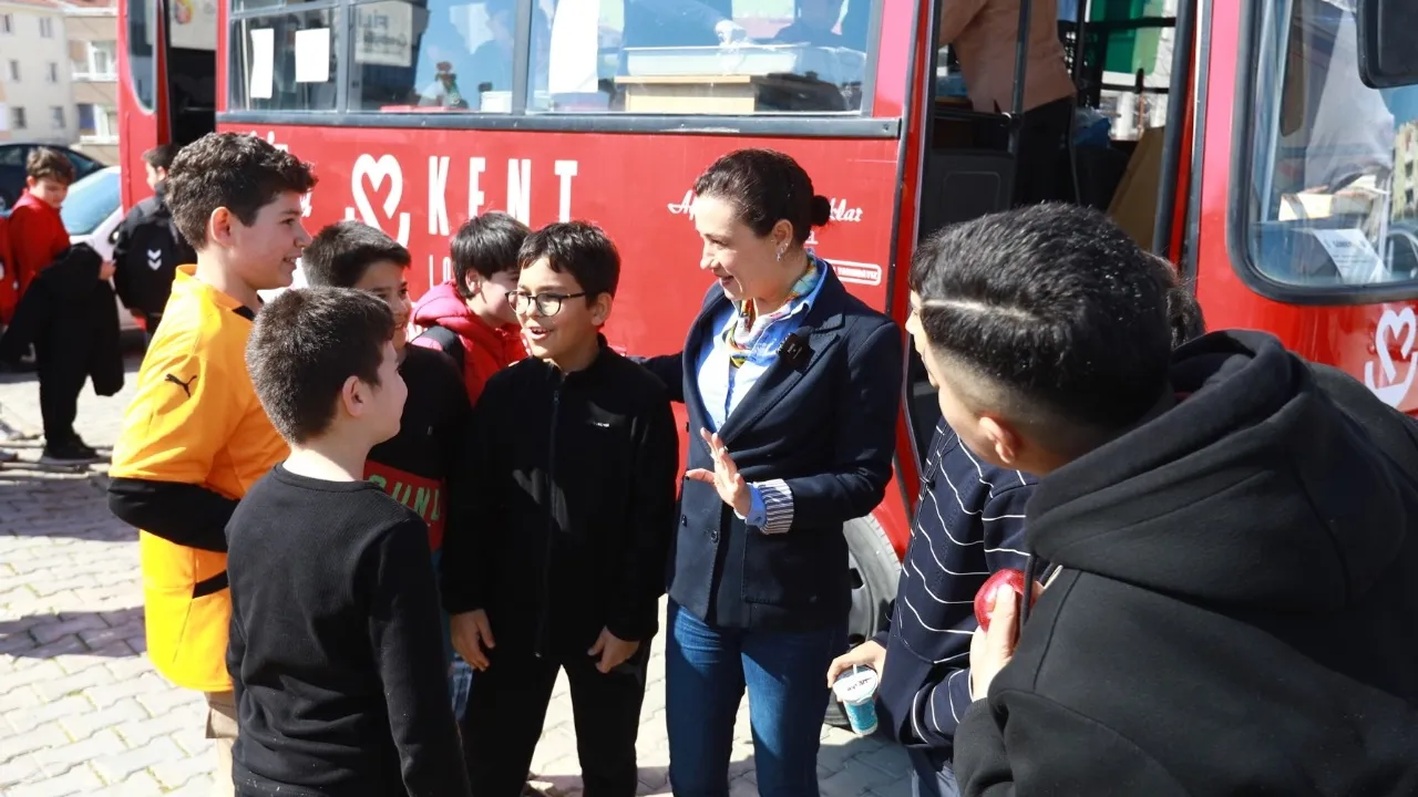 Efes Selçuk Belediye Başkanı Filiz Ceritoğlu Sengel, Cumhuriyet Mahallesi’nde ikincisini açtığı Kent Lokantası Öğrenci Otobüsünde öğrenciler ile bir araya geldi.İZMİR (İGFA) - Sosyal belediyecilik anlayışıyla mevcut ekonomik koşullarda öğrencilerin eğitim hayatlarına katkı sunmayı hedefleyen Efes Selçuk Belediyesi, Kent Lokantası Öğrenci Otobüsünün yoğun ilgi ve talep görmesiyle ikinci yemek otobüsünü Cumhuriyet Mahallesi’nde bulunan okul bölgesine de taşıdı. Öğrencilerin 10 TL karşılığında öğle yemeklerini satın alabildiği Kent Lokantası Öğrenci Otobüsü, okulların öğle tatillerinde öğrencilerin yoğun ilgisiyle hizmet vermeye devam ediyor.