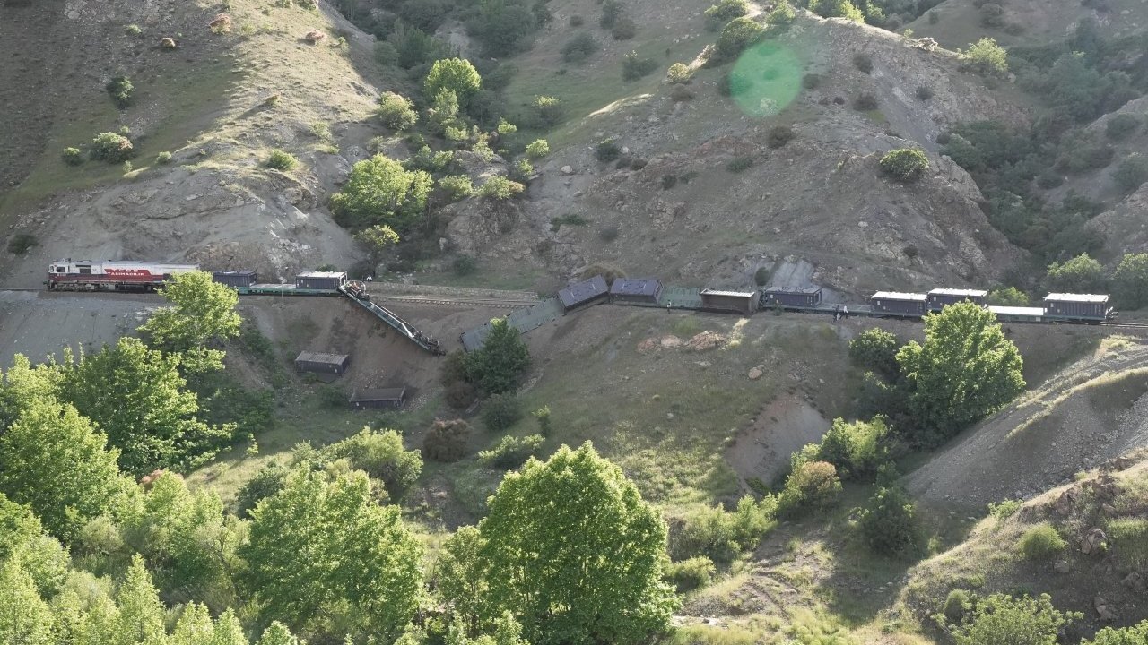 Bakır cevheri taşıyan yük treninin 5 vagonu, Ziyarettepe mevkisinde raydan çıktı.