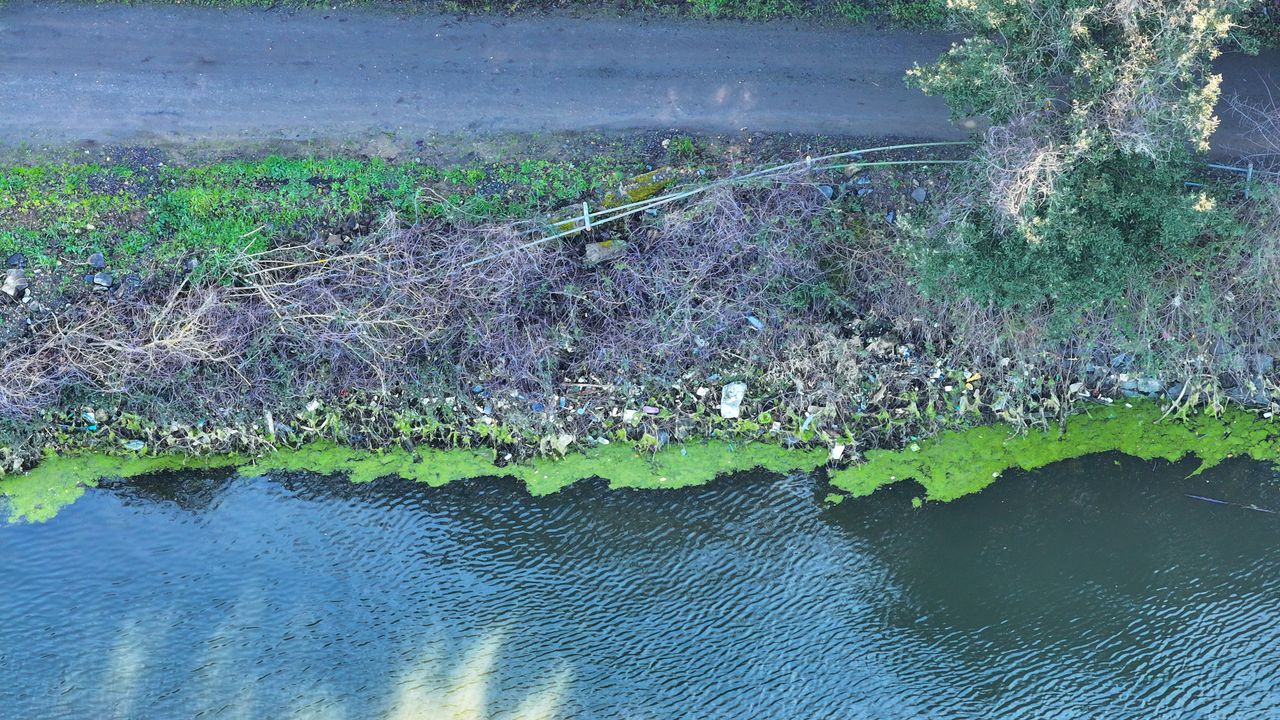 Atıkların yanı sıra aynı yerde biriken yosunlar (alg) dikkat çekti.