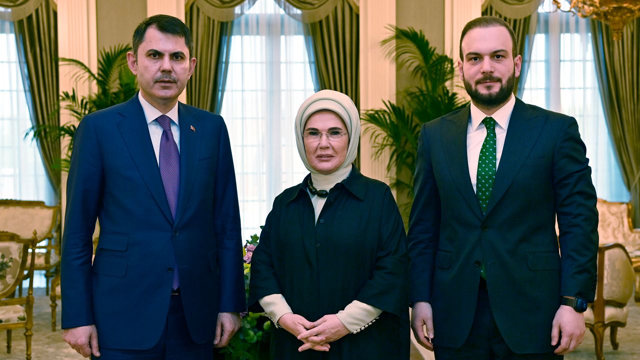 ANKARA (AA) - Cumhurbaşkanı Recep Tayyip Erdoğan'ın eşi Emine Erdoğan, Türkiye'nin ev sahipliğini yapacağı COP31'de Başkan olarak görevlendirilen Çevre, Şehircilik ve İklim Değişikliği Bakanı Murat Kurum ile Yüksek Düzeyli İklim Şampiyonu olarak belirlenen Sıfır Atık Vakfı Başkanı Samed Ağırbaş ile bir araya geldi.