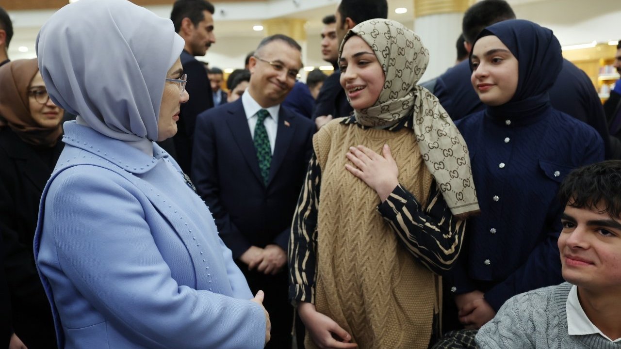Kütüphaneyi gezen Emine Erdoğan, oradaki öğrencilerle kitaplar üzerine sohbet etti, fotoğraf çektirdi.