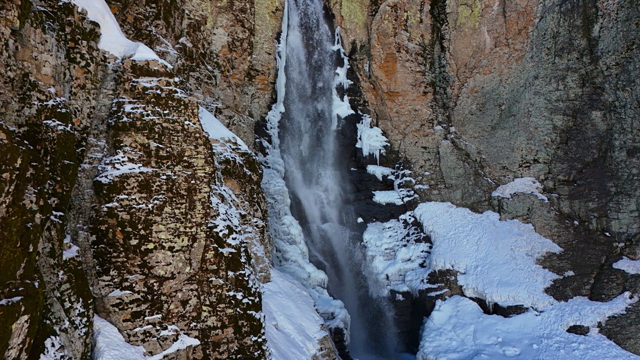 Misafirlerini ağırlamayı bekleyen şelale dronla görüntülendi.