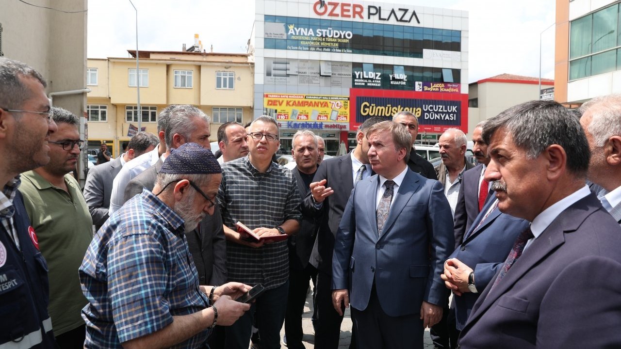 ERZİNCAN (AA) - Erzincan’da sıralı dükkanların çatısında çıkan yangının ardından Vali Hamza Aydoğdu esnafı ziyaret ederek hasar tespit çalışmalarını yerinde inceledi.