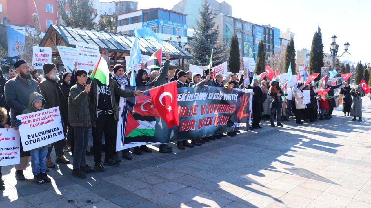 ERZURUM (AA) - Erzurum Sivil Toplum Platformu (ESTP) ile sağlık çalışanları, İsrail'in Gazze'ye yönelik saldırılarını protesto etmek amacıyla "İzzet Yürüyüşüne İcabet" yürüyüşü düzenledi.