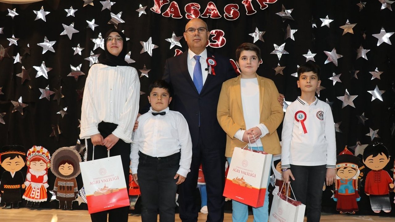 Ağrı'da Kültür ve Kongre Merkezi'nde düzenlenen program, saygı duruşunda bulunulması ve İstiklal Marşı'nın okunmasıyla başladı.
