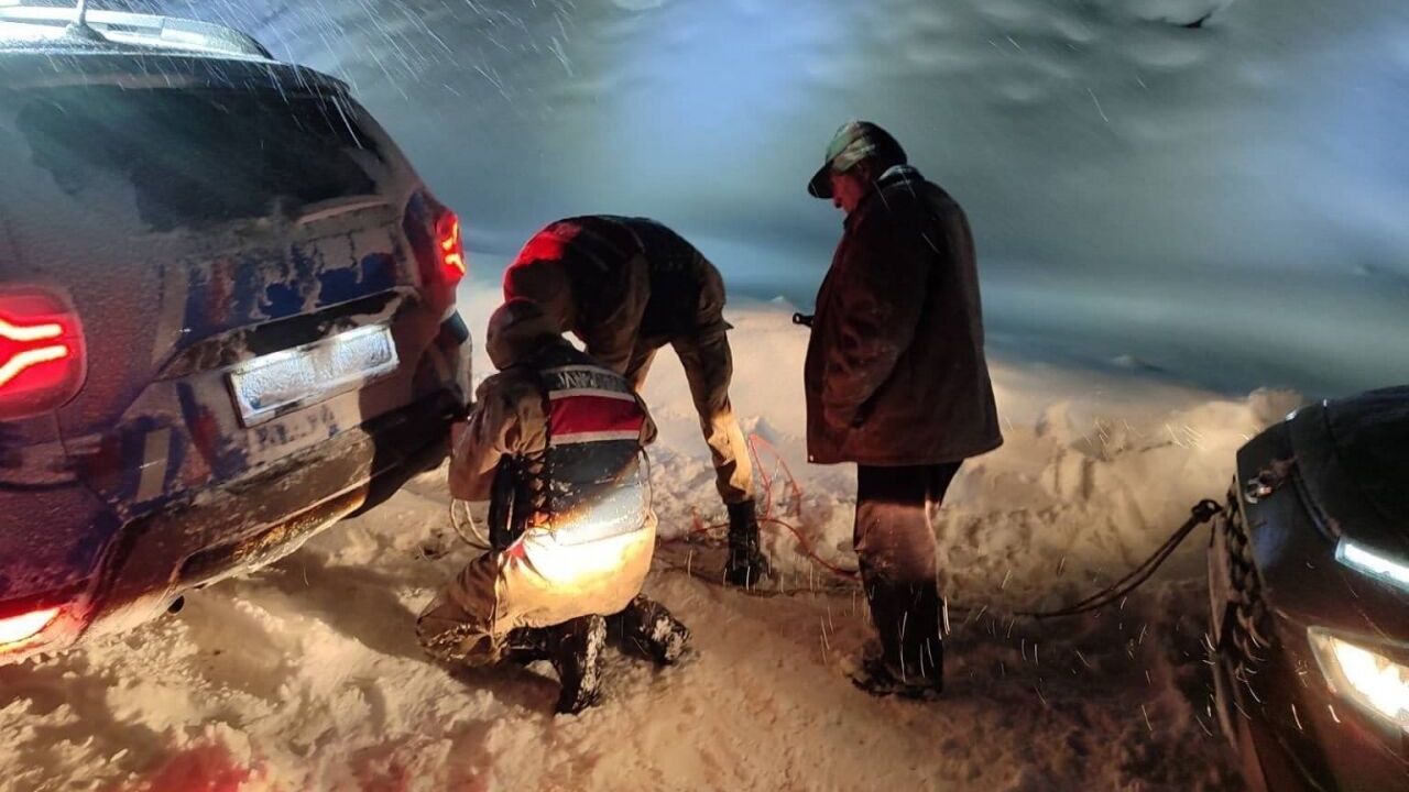 İl Jandarma Komutanlığı ekipleri, ilçeye bağlı Başçeşme Mahallesi'nde kar ve olumsuz hava koşulları nedeniyle bir kişinin aracıyla mahsur kaldığı ihbarını aldı.