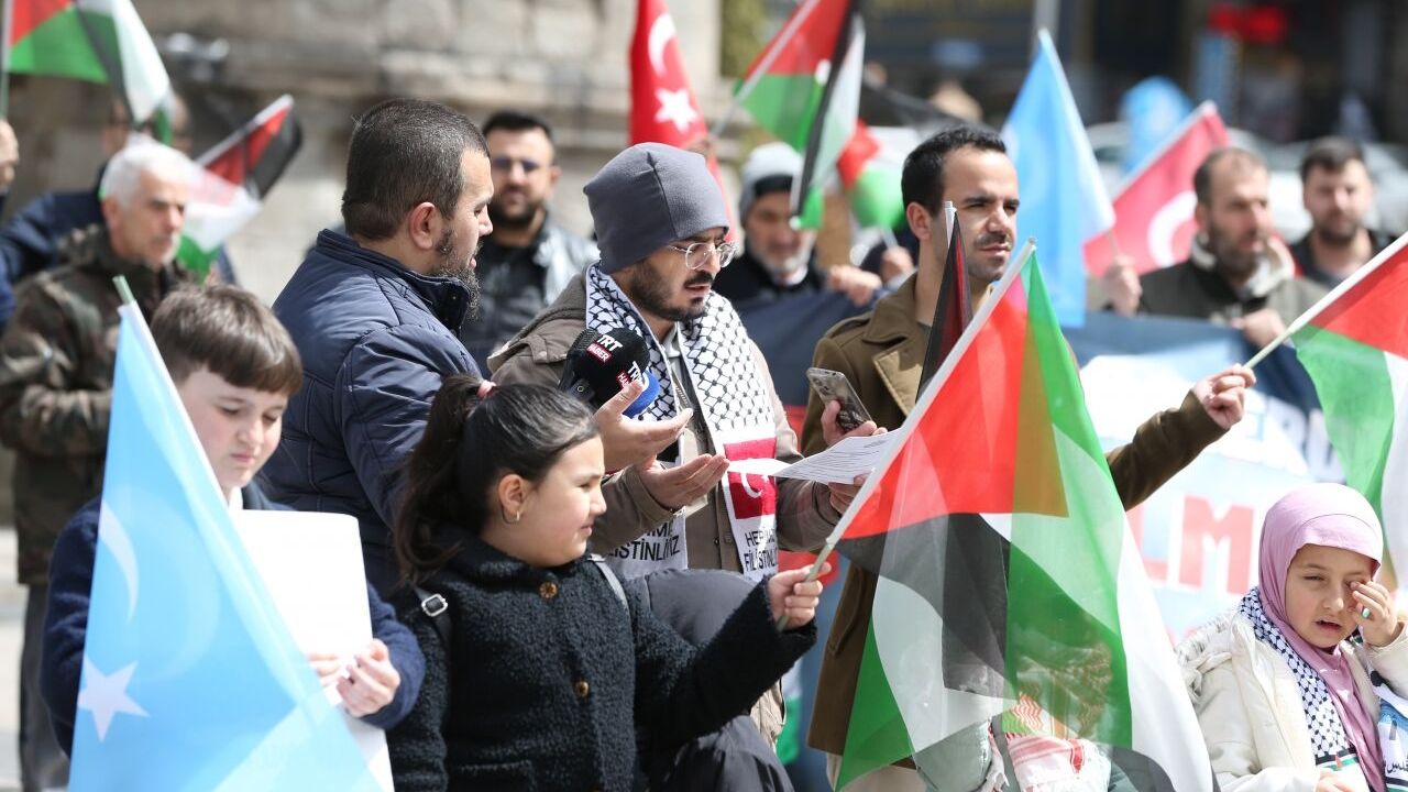 Kent merkezindeki Lala Mustafa Paşa Cami önünde bir araya gelen aralarında doktor ve tıp fakültesi öğrencilerinin de bulunduğu sağlık çalışanları, Türk, Filistin ve Doğu Türkistan bayrakları eşliğinde, taşıdıkları döviz ve pankartlarla Yakutiye Medresesi'ne kadar yürüdü.