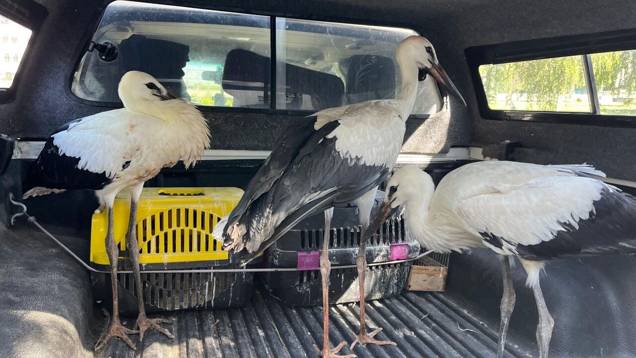 Erzurum DKMP'de görevli veteriner hekim Selçuk Albayrak tarafından bakımları yapılan leylek yavruları, doğaya dönecek boyuta erişene kadar bakım ve beslenmeleri için Kars Yaban Hayvanları Tedavi ve Rehabilitasyon Merkezine gönderildi.