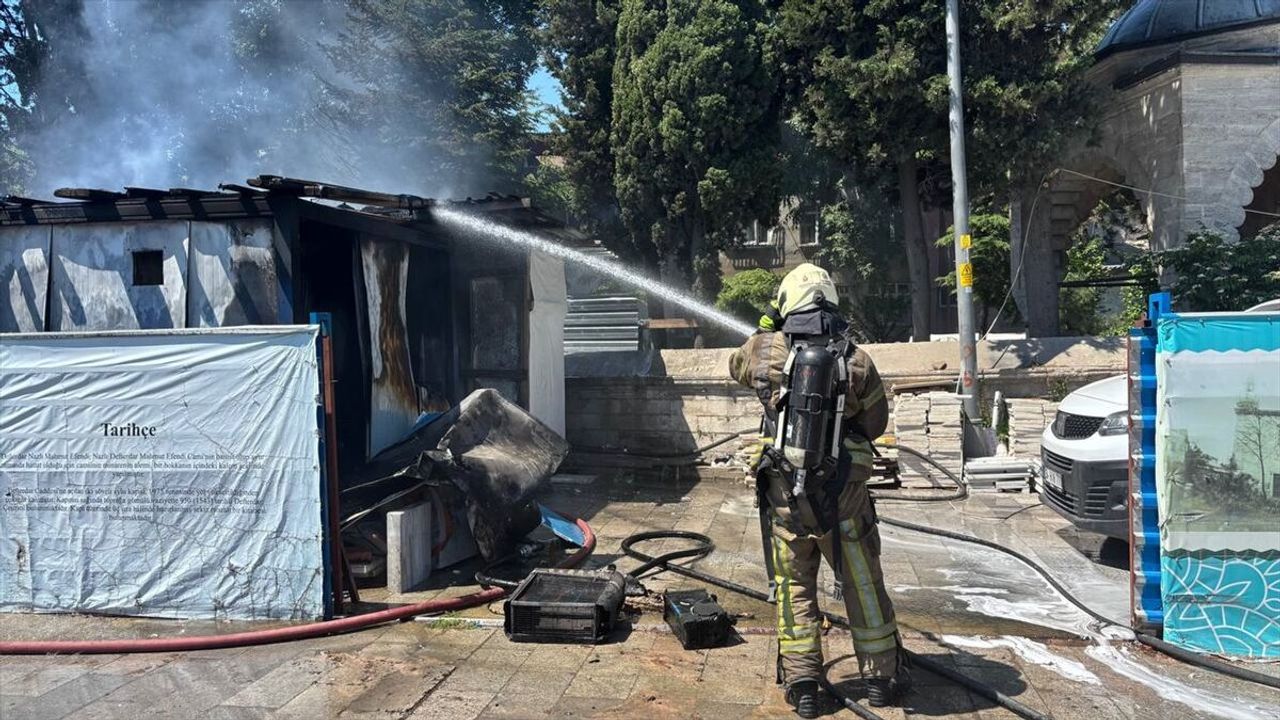 Nişanca Mahallesi Defterdar Caddesi'ndeki Nazlı Defterdar Mahmut Efendi Camisi'nin restorasyonunda çalışan işçilerin kaldığı konteynerde, öğle saatlerinde henüz bilinmeyen nedenle yangın çıktı.