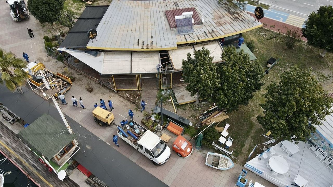 Fethiye Belediyesi ekipleri, yasal işlemlerin tamamlanmasının ardından kafe ve restoranlara ait ruhsatsız ya da imar planına aykırı yapıların kaldırılması için çalışma başlattı.