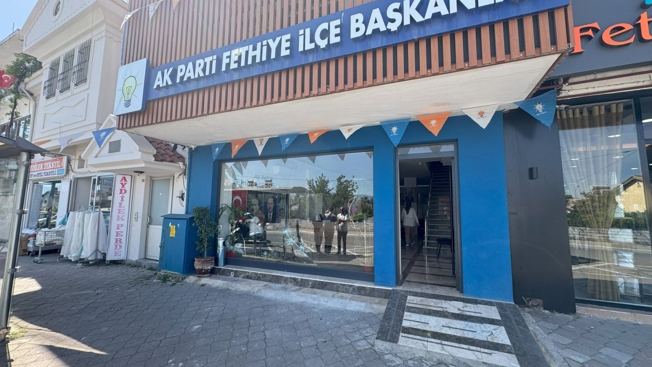 MUĞLA (AA) - Muğla'nın Fethiye ilçesinde, AK Parti İlçe Başkanlığı binasına maskeli bir kişinin taşlı saldırıda bulunması güvenlik kamerasınca kaydedildi.