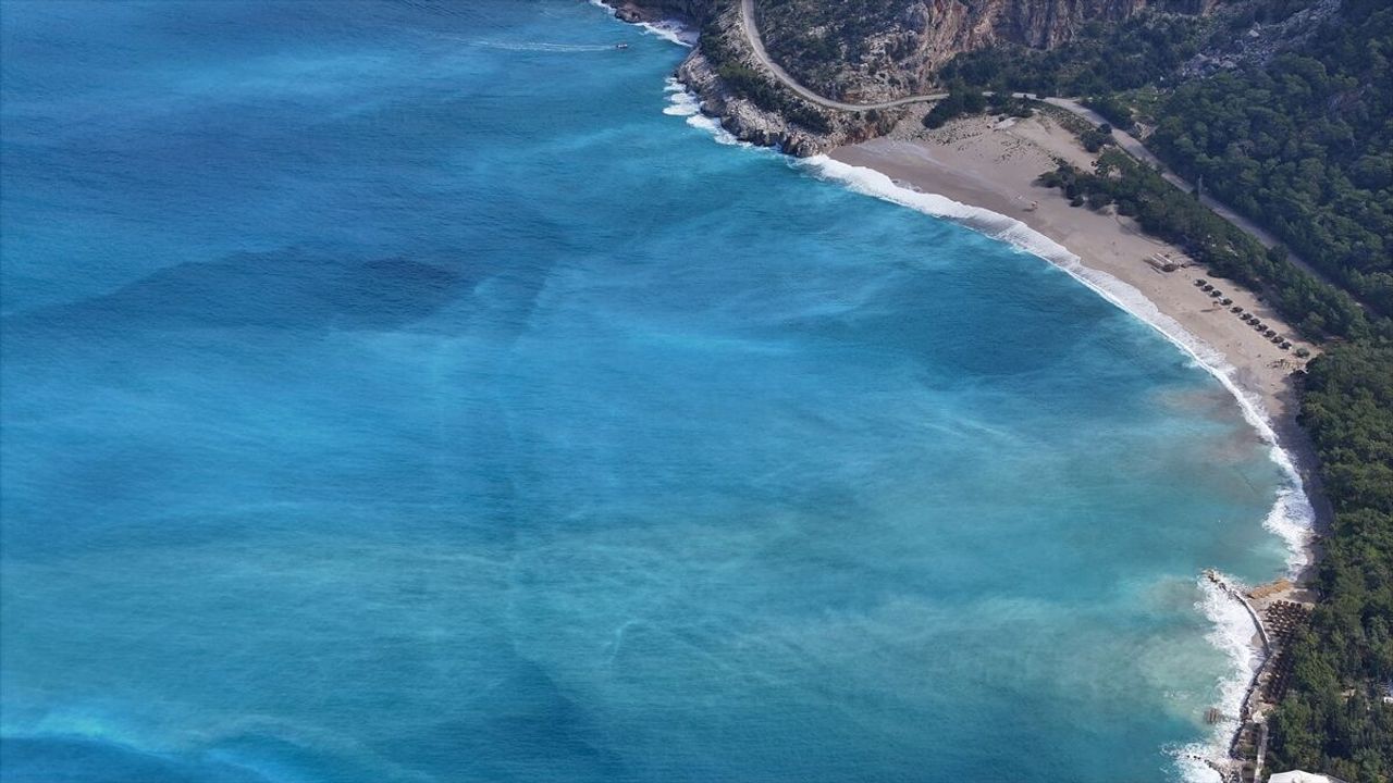 Turkuaza bürünen denizin eşsiz manzarası havadan görüntülendi.