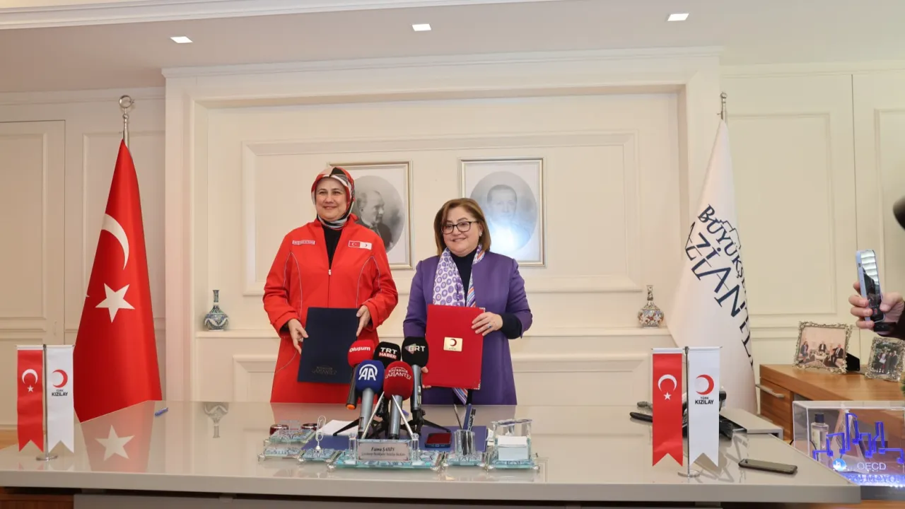 İç savaşın son bulduğu Suriye’de yapılacak insani faaliyetler için geniş bir çalışma alanını kapsayan iş birliği protokolü, düzenlenen törenle Gaziantep Büyükşehir Belediyesi Başkanlık Makamı’nda imzalandı. Büyükşehir Belediye Başkanı Fatma Şahin ve Türk Kızılay Genel Başkanı Prof. Dr. Fatma Meriç Yılmaz’ın imzaladığı protokollerle eğitim, etki merkezi çalışmaları, kan hizmetleri, afet, sosyal hizmetler konularda iş birliği yapılacak.