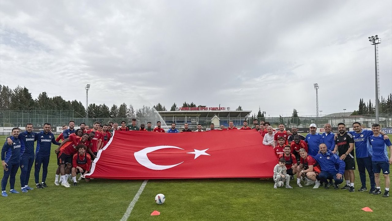 Kırmızı-siyahlı ekip, antrenman öncesinde Türk Bayrağı ile 23 Nisan Ulusal Egemenlik ve Çocuk Bayramı'nı kutladı.
