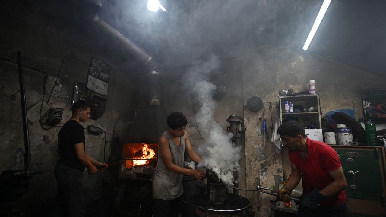 Tarihi Bakırcılar Çarşısı'nda faaliyet gösteren demirciler, demir dövdükleri ocaklarda Kurban Bayramı dolayısıyla kesilen kurbanların kelle ve paçalarını ütüleyip ateşte dağlamak için mesai yaptı.