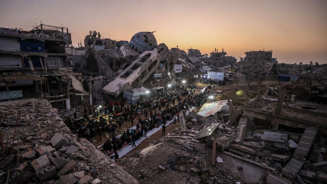 GAZZE (AA) - İsrail saldırılarında evleri yıkılan Gazze Şeridi'nin kuzeyindeki Beyt Lahiya kenti sakinleri, Ramazan ayında dayanışmayı artırmak amacıyla yıkıntılar arasında toplu iftar yaptı.