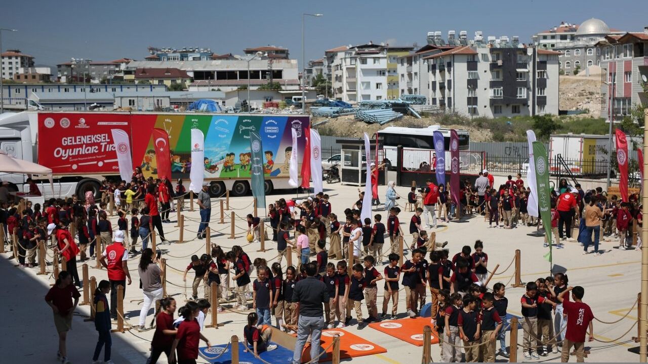 HATAY (AA) - Türkiye Geleneksel Spor Dalları Federasyonunun Geleneksel Oyunlar Tırı, 6 Şubat 2023'teki depremlerden etkilenen Hatay'a geldi.