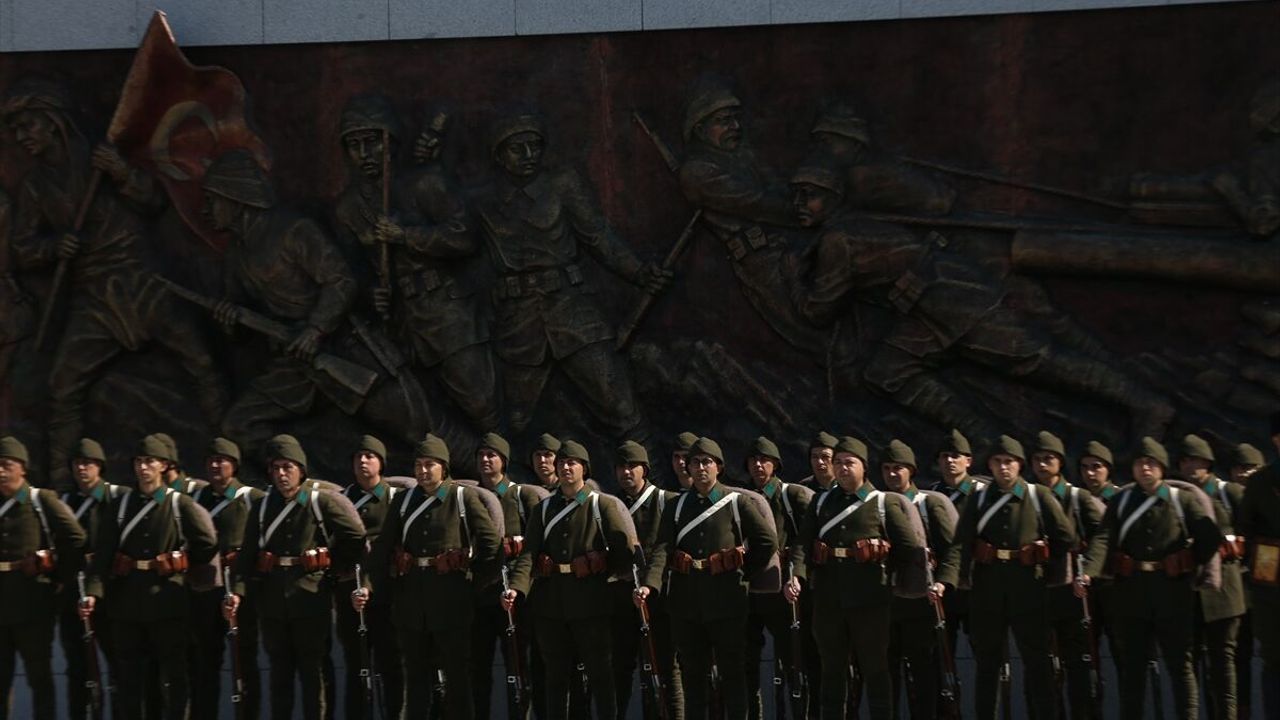 Şehitler Abidesi'nde tören akış programı çerçevesinde gerçekleştirilen provada, 2. Kolordu Komutanlığı'nda görevli askerler bando eşliğinde geçit töreni ve ardından saygı atışı yaptı.