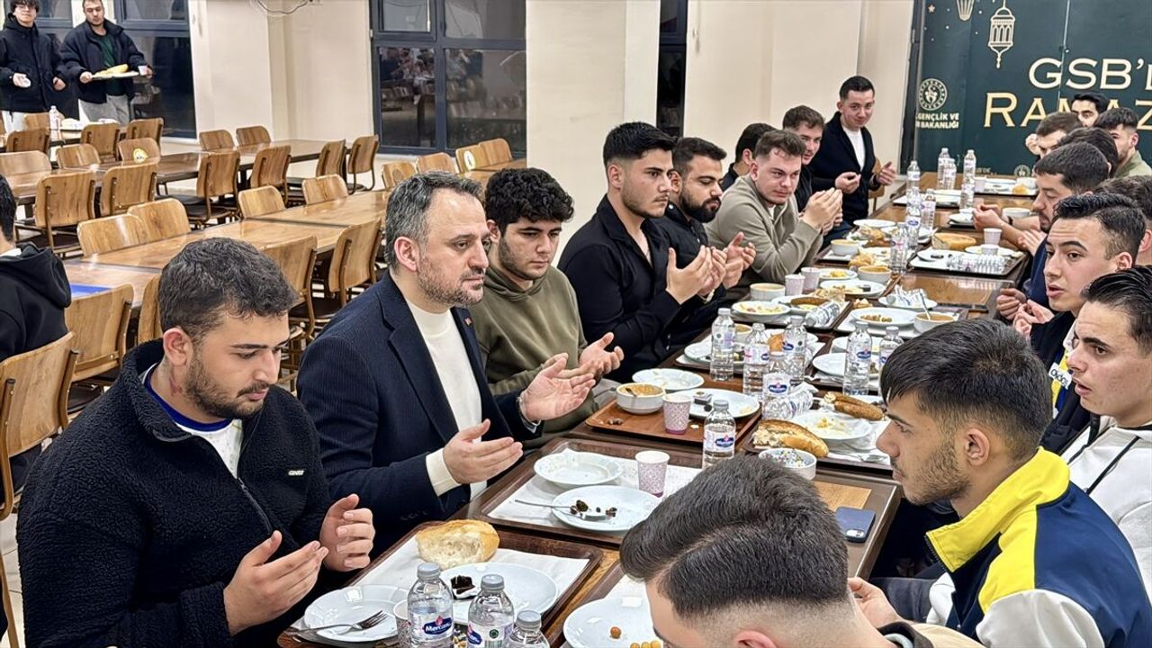 Eminoğlu, Gençlik ve Spor Bakanlığına bağlı Kırşehir Neşet Ertaş Öğrenci Yurdu'nu ziyaret ederek, sahur programı öncesinde düzenlenen söyleşide gençlerle bir araya geldi.