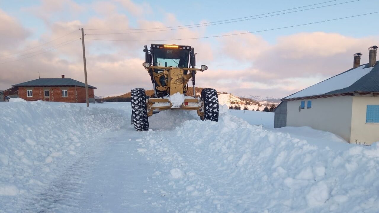 İl Özel İdaresi ekiplerince yolların ulaşıma açılması amacıyla iş makineleri yardımıyla çalışma yürütülüyor.