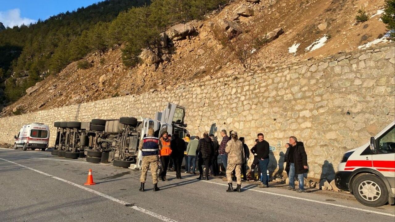 Mehmet Ayçiçek (48) idaresindeki 25 FJ 161 plakalı tır, Budak köyü mevkisinde devrildi.