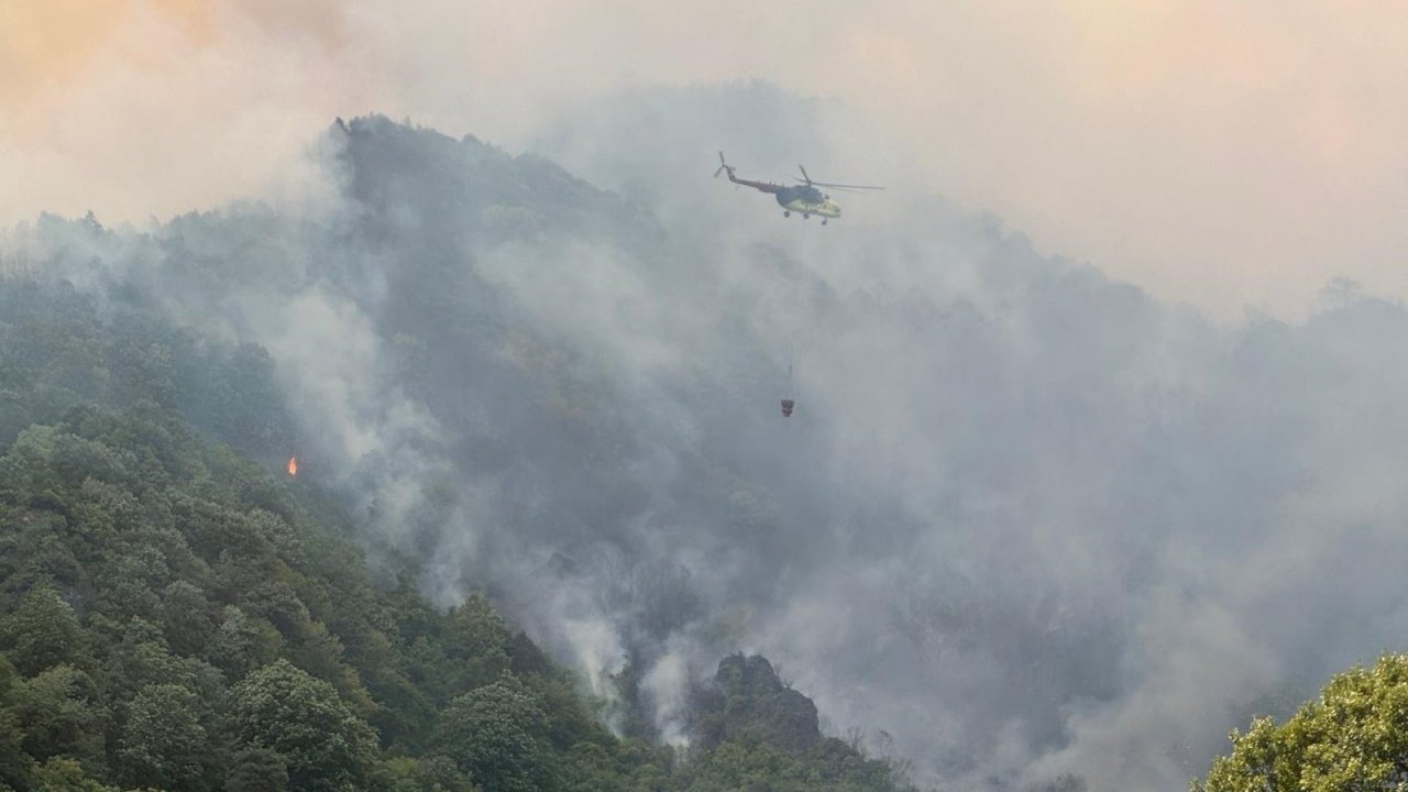 Dik ve eğimli arazide alevlerle mücadelenin zorluğu nedeniyle bölgeye yangın söndürme uçakları ve helikopterler de yönlendirildi.