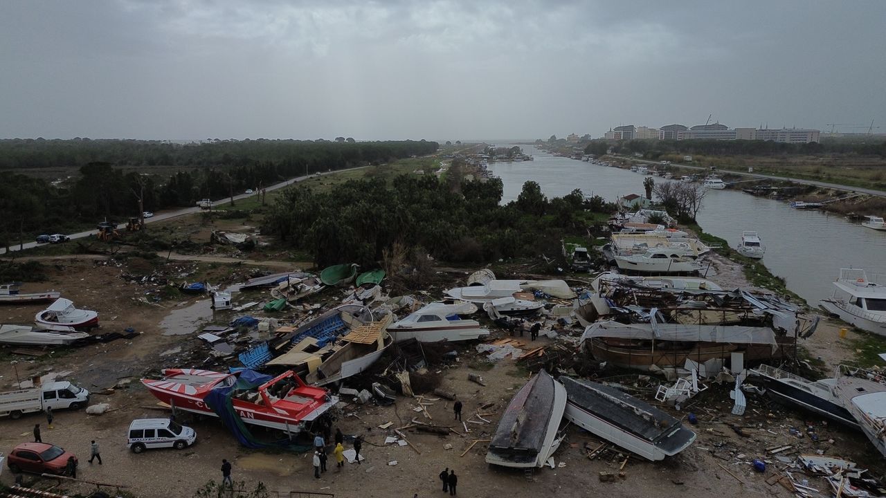 Görüntülerde, çok sayıda farklı boylardaki teknede hasar oluştuğu görüldü. Teknelerden bazılarının parçalandığı, bazılarının ters döndüğü, bazılarının da devrildiği dikkati çekti.
