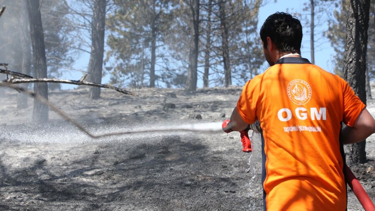 Helikopter desteğiyle de yürütülen çalışmalar sonucu yangın kontrol altına alındı.