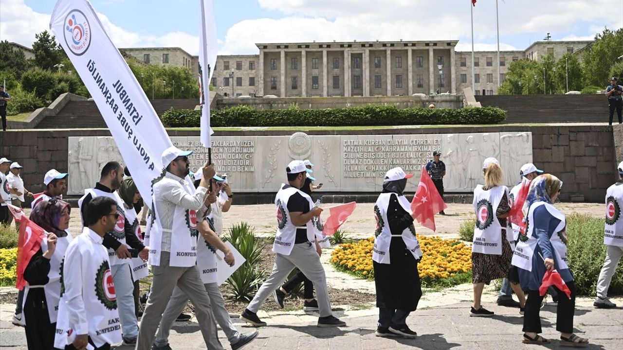 Konuşmanın ardından Arslan ve konfederasyona üye sendika başkanları ile işçiler, ellerinde taşıdıkları pankart ve dövizlerle Hazine ve Maliye Bakanlığına yürüdü.