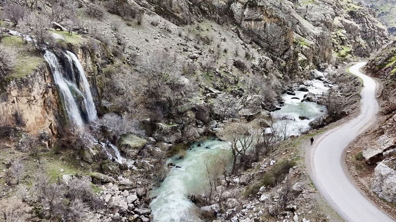 HAKKARİ (AA) - Hakkari'nin Şemdinli ilçesinde karların erimesi ve yağışların etkisiyle canlanan şelaleler, dronla görüntülendi.