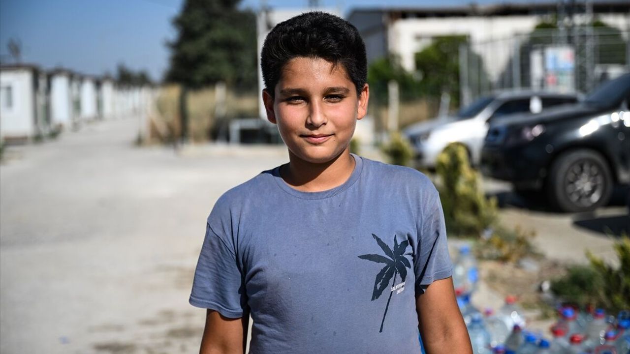 HATAY (AA) - Hatay'ın merkez Antakya ilçesinde dünden bu yana süren orman yangınına müdahale eden ekiplerin su tankerine konteyner kentte kalan çocukların pet şişelerle su taşıması kameralarca kaydedildi.