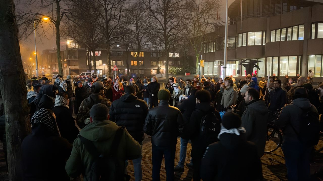 Vredenburg Meydanı'ndan yürüyüşe geçen göstericiler, eylemlerini Utrecht Paardenveld Polis Merkezi önünde sürdürdü.
