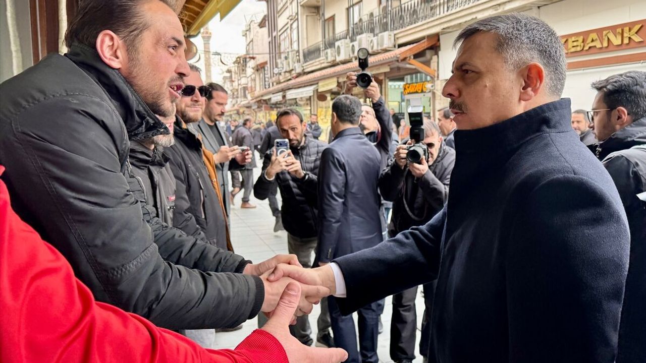 Çiftçi, bazı programlara katılmak için geldiği Konya'da tarihi Bedesten Çarşısı'nı gezdi, esnaf ve vatandaşlarla buluştu.