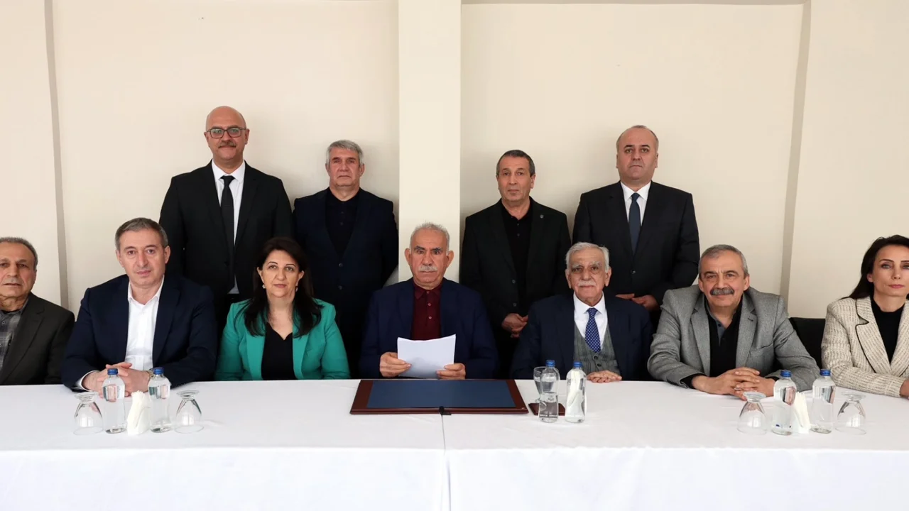 Açıklama öncesinde terör örgütü lideri Abdullah Öcalan’la yapılan görüşmeden fotoğraf DEM Parti'nin sosyal medya hesabından paylaşıldı.