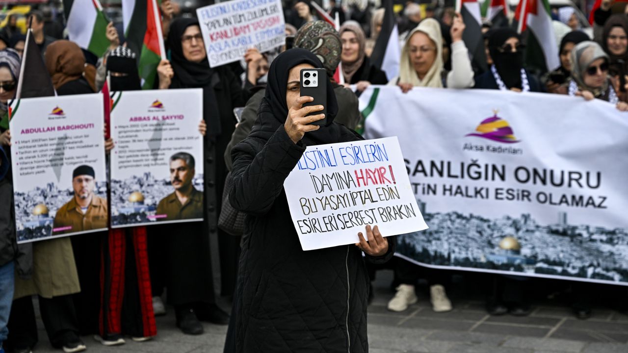 İSTANBUL (AA) - Aksa Kadınları Derneği, İsrail Meclisince onaylanan ve yalnızca Filistinlilere uygulanması öngörülen idam cezası düzenlemesini protesto etti.