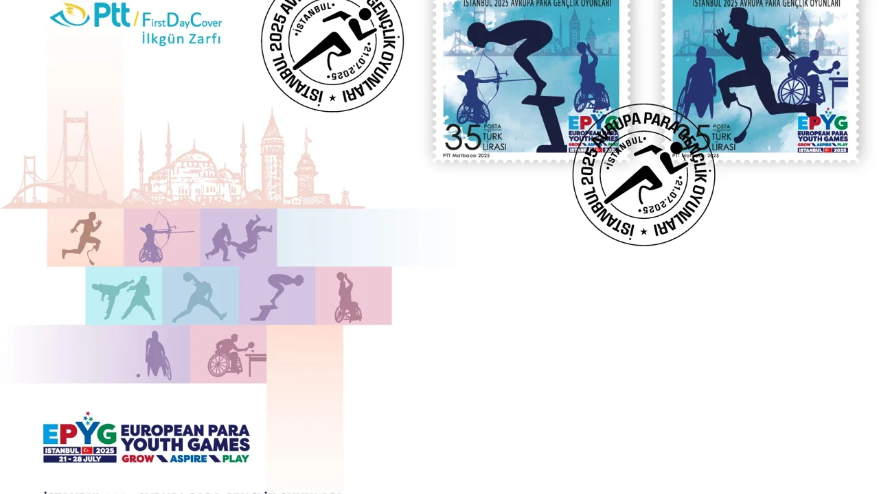 PTT AŞ tarafından "İstanbul 2025 Avrupa Para Gençlik Oyunları" konulu anma pulu ve ilkgün zarfı 21 Temmuz 2025 tarihinde tedavüle sunuldu.İSTANBUL (İGFA) - PTT AŞ, 21 Temmuz 2025 tarihinde "İstanbul 2025 Avrupa Para Gençlik Oyunları" konulu 2x35 TL (45 x 45 mm boyutunda) bedelli anma pulu ile söz konusu pula ait 105 TL bedelli ilkgün zarfını abone sayısı kadar PTT iş yerlerinde ve PTT AŞ’ye ait www.filateli.gov.tr web adresinde satışa sundu.