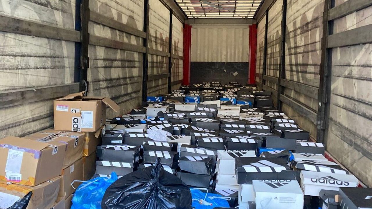 Tırdaki zincir markaya ait 2 bin 45 çift ayakkabı, Kartal'daki bir depoda bulundu.