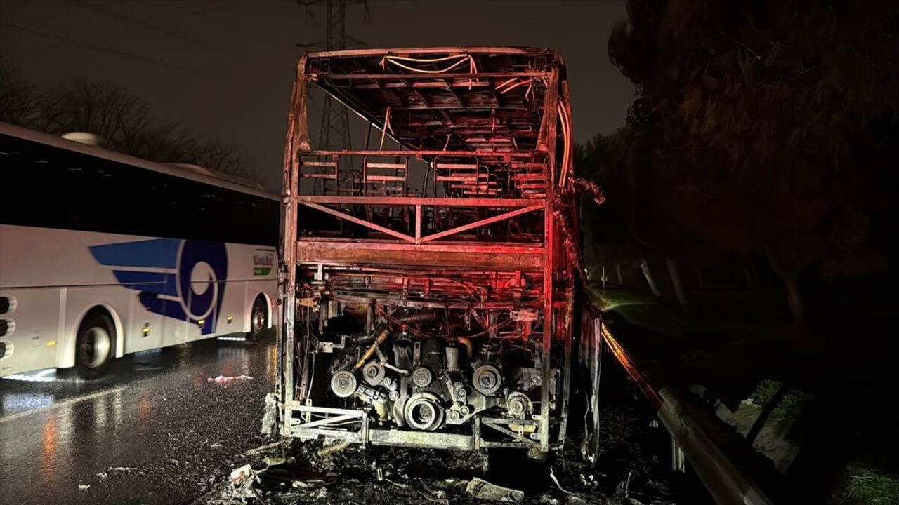 Şoför aracı emniyet şeridine çekerken, yolcular hızlıca otobüsten indi. Büyüyen alevler kısa sürede otobüsün tamamını sardı.