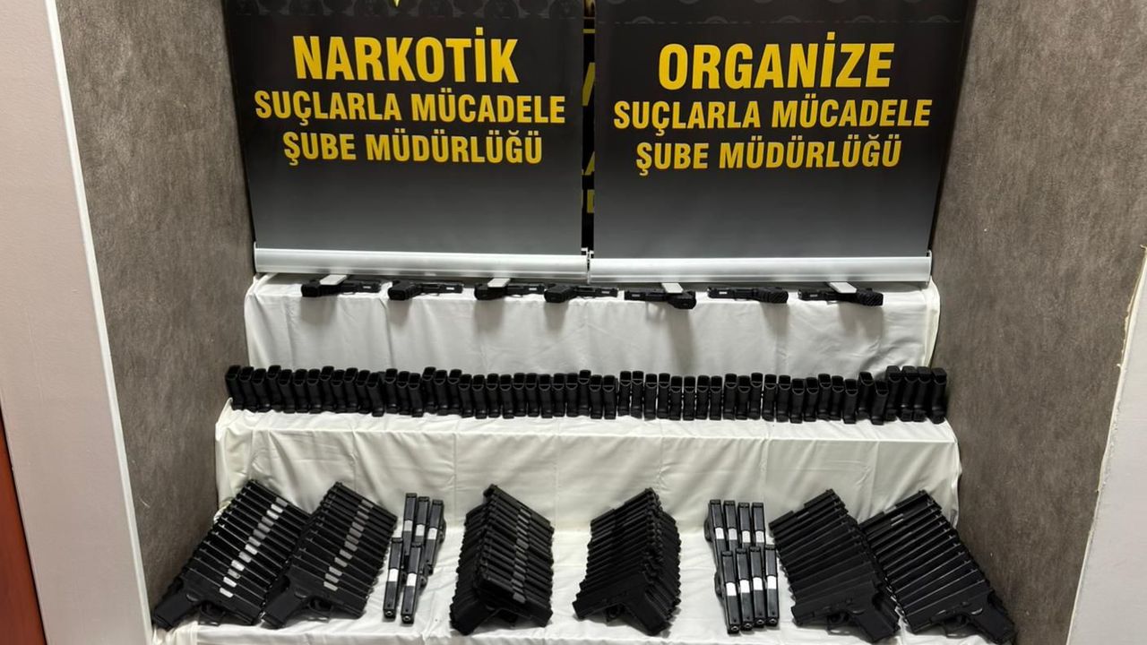 İZMİR (AA) - İzmir'in Karabağlar ilçesinde düzenlenen helikopter destekli operasyonda, 149 ruhsatsız tabanca ile çok sayıda silah parçası ve bir miktar esrar ele geçirildi.