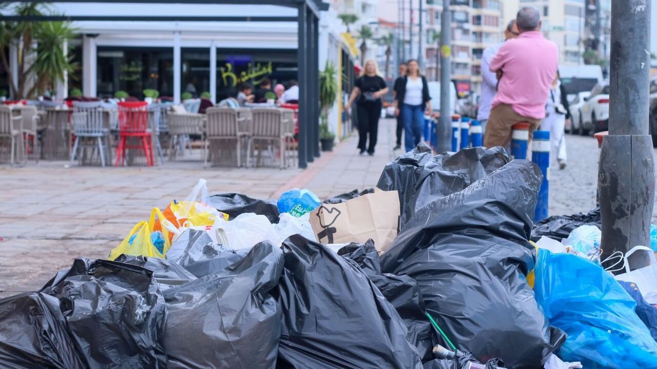 Kentin en işlek noktalarından Konak ilçesindeki Alsancak, Kıbrıs Şehitleri Caddesi ve Kordon bölgesinde oluşan çöp yığınları tepkilere neden oldu.