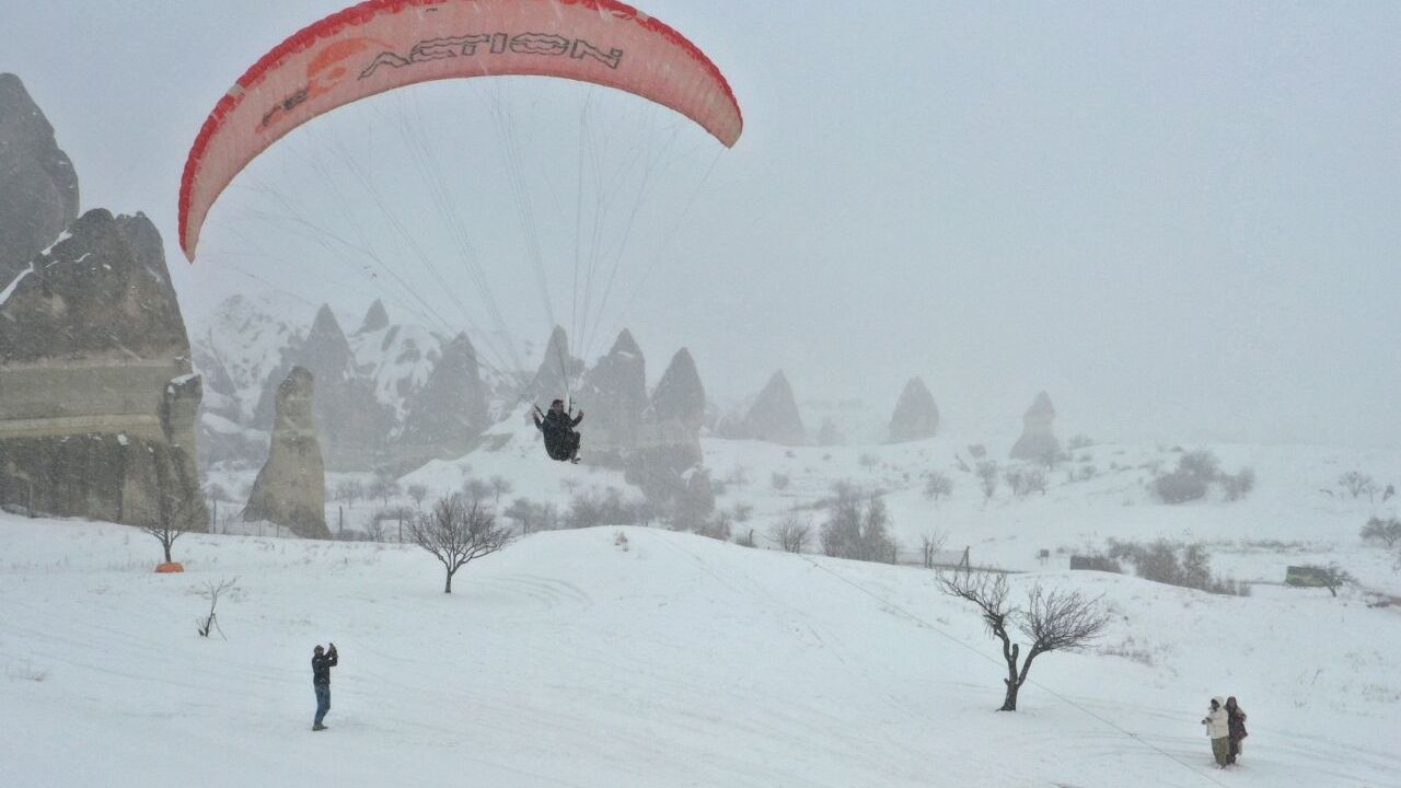 NEVŞEHİR (AA) - Kapadokya'da bir süredir etkili olan karın keyfini çıkarmak isteyenler, peribacaları arasındaki kış etkinliğinde bir araya geldi.