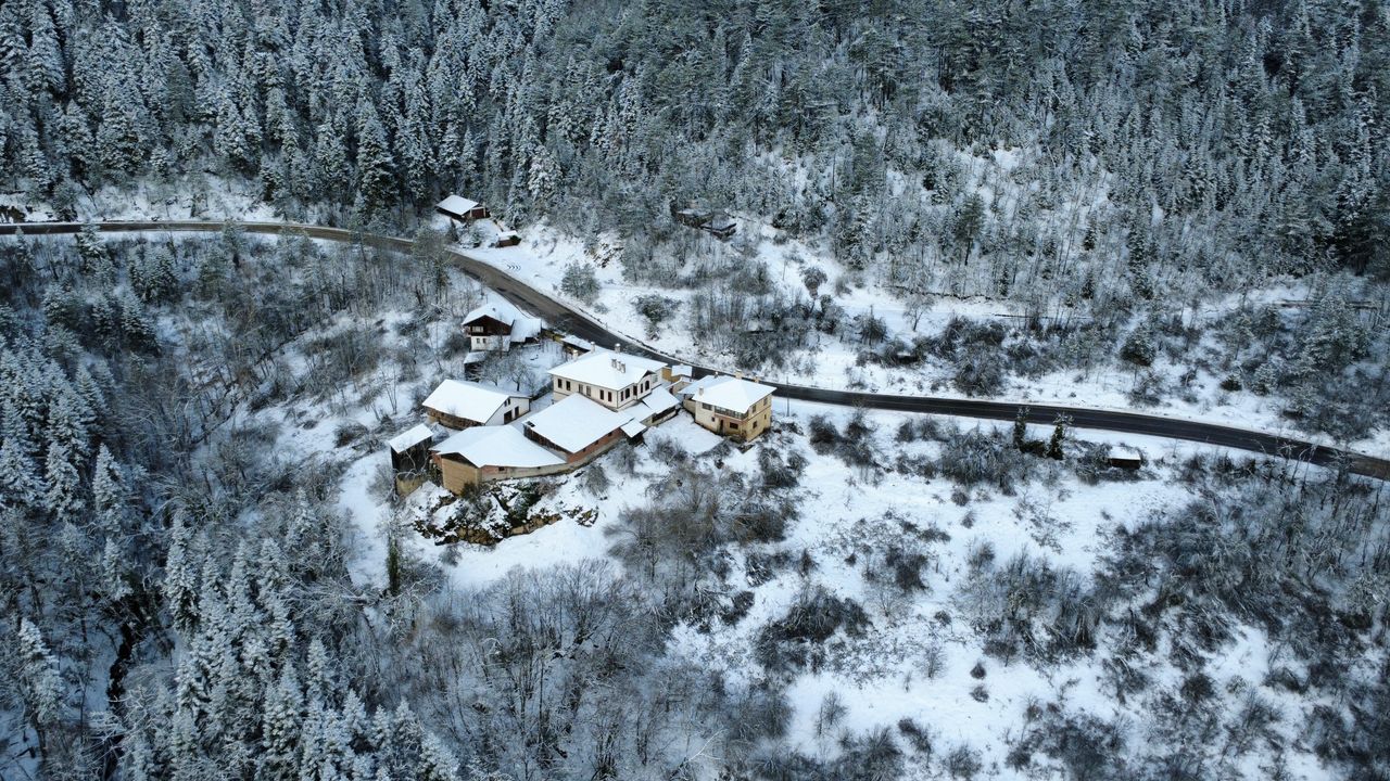 Yağışın ardından Ahmetusta Geçidi mevkisinde oluşan kış manzarası havadan görüntülendi.