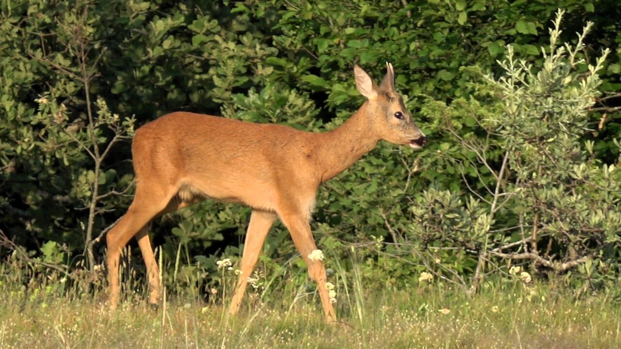 Görüntülerde, karacanın ormanlık alanda yürümesi ve bir süre sonra gözden kaybolması yer alıyor.