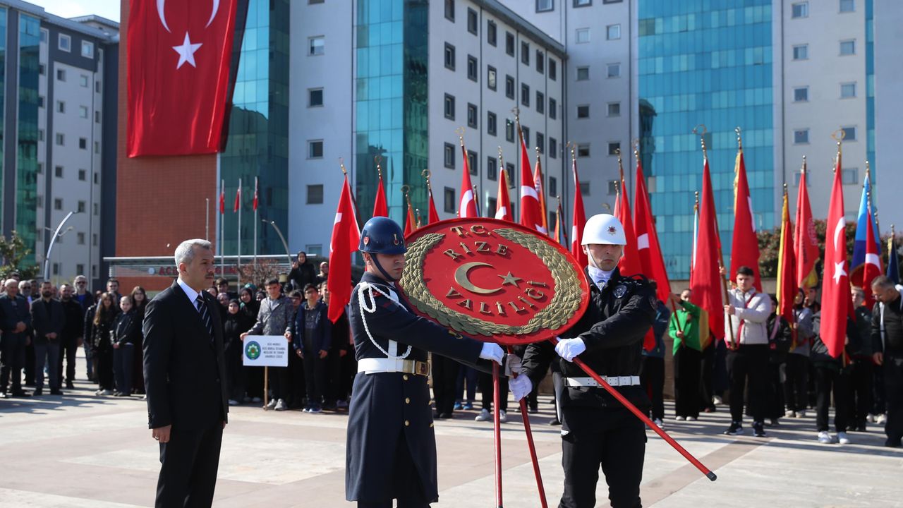 Saygı duruşunda bulunulması ve İstiklal Marşı'nın okunmasıyla devam eden törene, Cumhuriyet Başsavcısı Recep Sevgili, Recep Tayyip Erdoğan Üniversitesi Rektörü Prof. Dr. Yusuf Yılmaz, ÇAYKUR Genel Müdürü Yusuf Ziya Alim, siyasi parti ve sivil toplum kuruluşu temsilcileri ile öğrenciler katıldı.