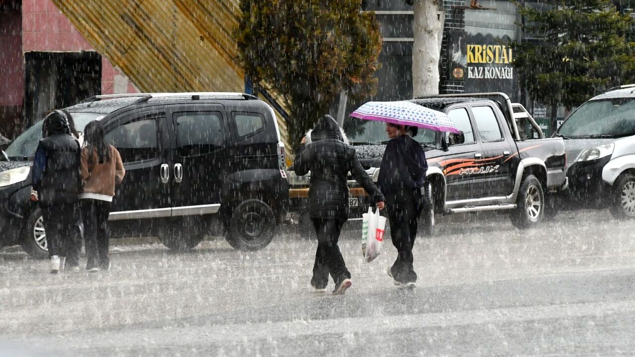 İlçede öğle saatlerinden başlayan sağanak, havanın soğumasıyla doluya dönüştü.